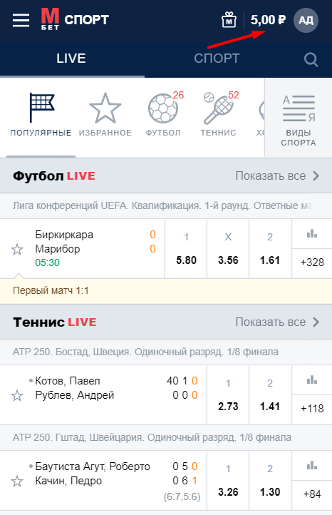 Инструкция актуальна для мобильной версии сайта БК Марафон.