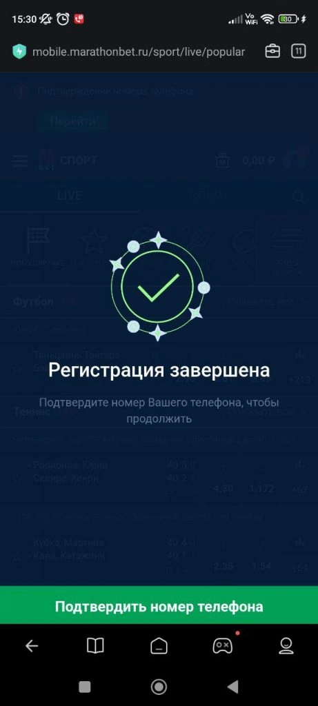 Как зарегистрироваться в мобильной версии «МарафонБет»